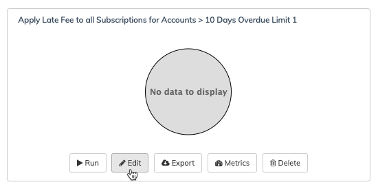 - Edit task Apply Late Fee - Edit to select RatePlan. In this tutorial, we will not edit the iterate subscription task.